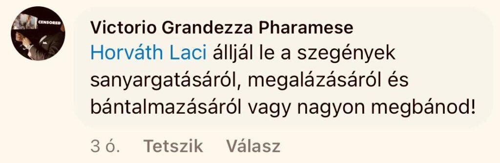 A gyöngyösi rajtaütésről készült videót a térség országgyűlési képviselője, a kábítószer elleni küzdelem kormánybiztosává kinevezett Horváth László is megosztotta a közösségi oldalán – ahol Horváth Laci néven „fut” –, amire aztán az alábbi komment érkezett: